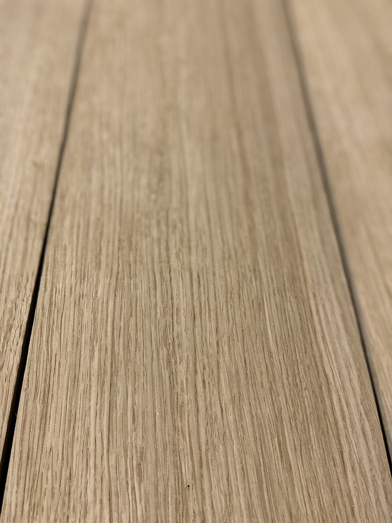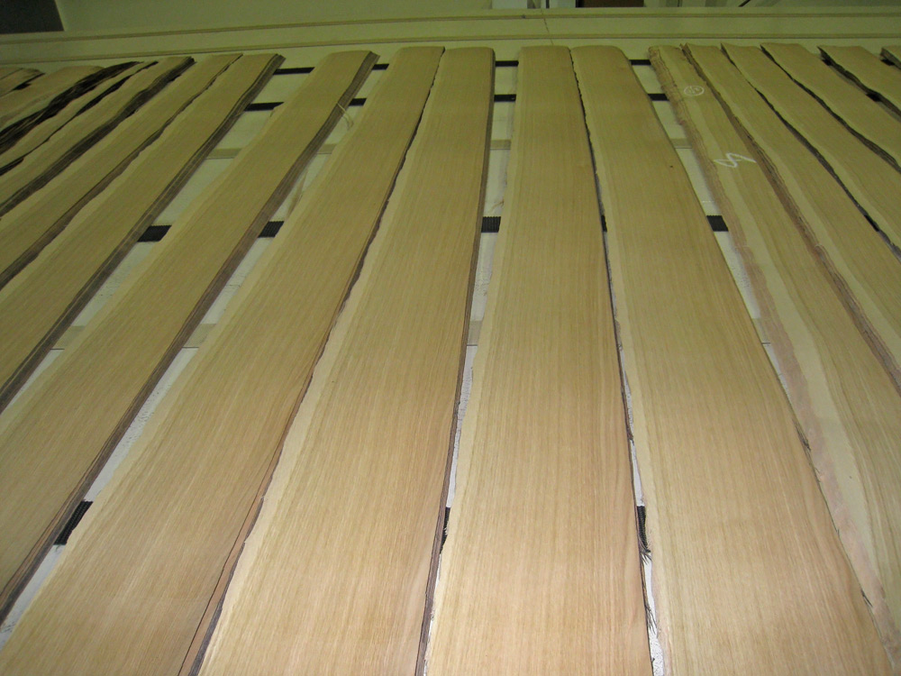 Stocken kvartas i fyra delar och när fanéret skärs bildas rakare ådring.