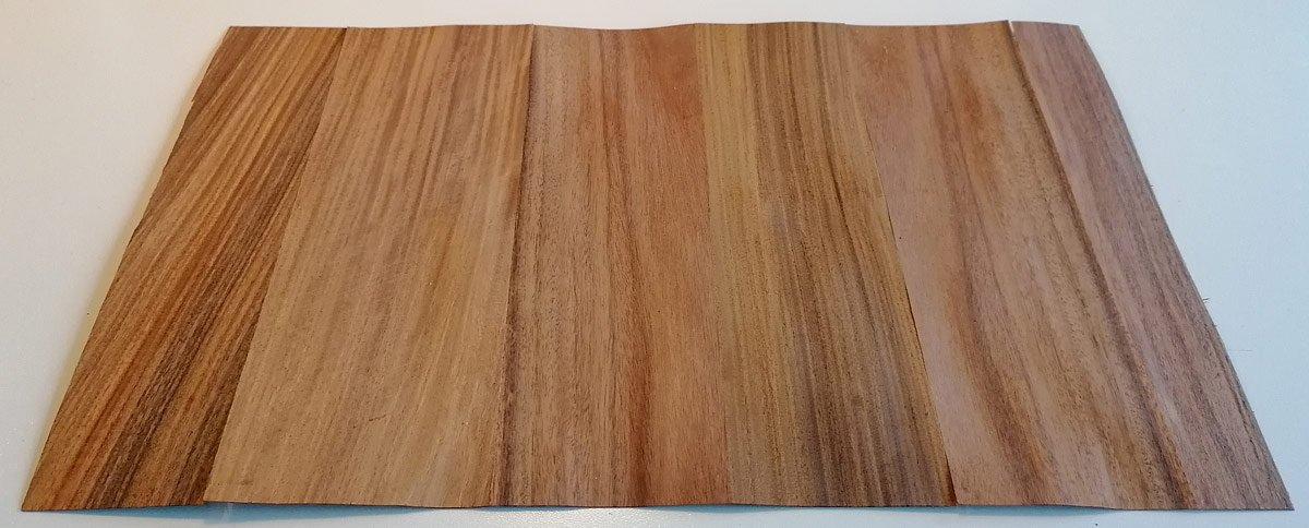 Fanérblad fogade från samma bunt utdragna efter varandra.